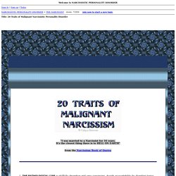 Narcissistic Personality Disorder − Who is a Malignant Narcissist? By Sam Vaknin, Ph.D. Narcissistic Personality Disorder − Who is a Malignant Narcissist? by: Sam Vaknin, 100% Effective Natural Hormone Treatment ... Return Doc